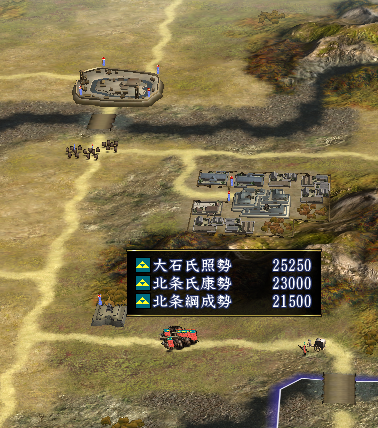 北条家も70,000ほどで侵攻してきます。