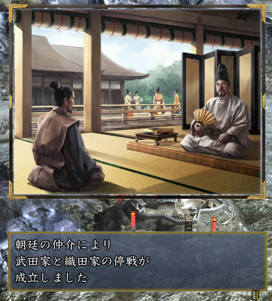 もう少しで落城というところで、武田家は朝廷を介して停戦を行いました。