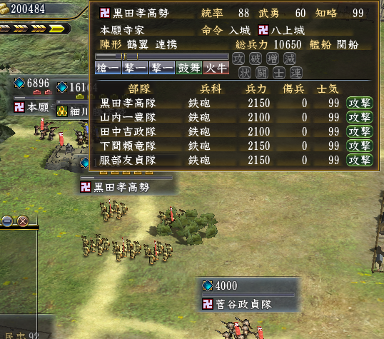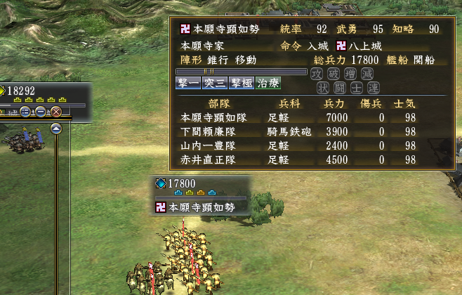 前回と同様に、野戦で本願寺家と戦う予定。