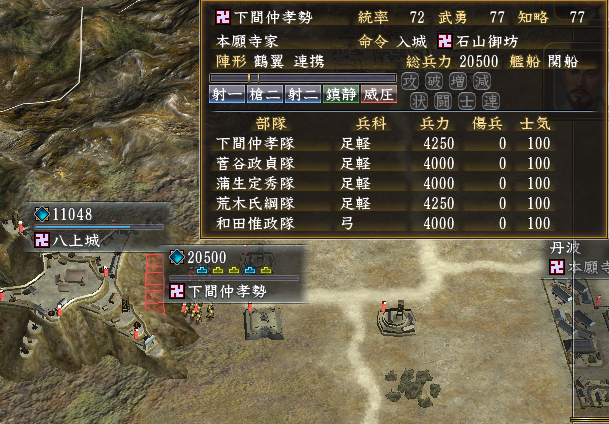 目指すは、本願寺家は丹波八上城20,000。