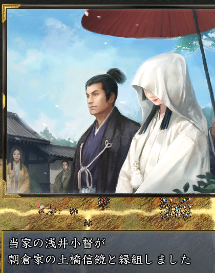 朝倉家にかまっている余裕がないため、ここは浅井小督を嫁がせて朝倉家と同盟を結びます。