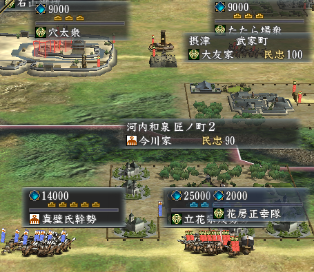 北近江の残敵掃討は真田幸村勢にまかせて、主力武将を河内和泉へ集合させます。
