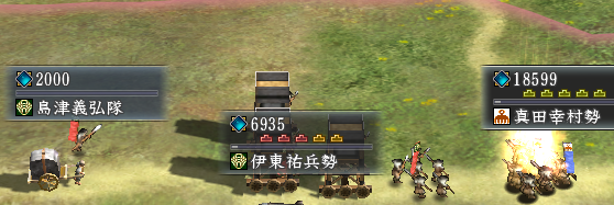 ほぼ同兵力で野戦勝負に出ます。