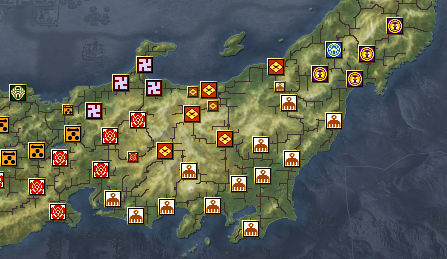 有力大名は、大友家18ヶ国、織田家14ヶ国、南部家8ヶ国、武田家と本願寺家は4ヶ国です。