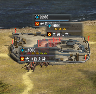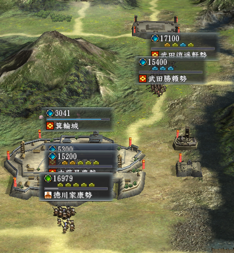 徳川家康勢、北条氏康勢、本多忠勝勢で攻撃。