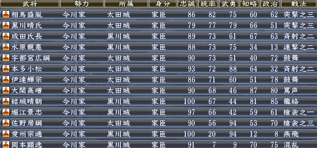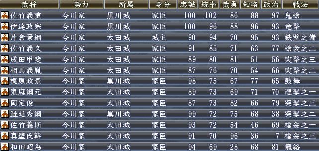 今川家は11ヶ国所有。