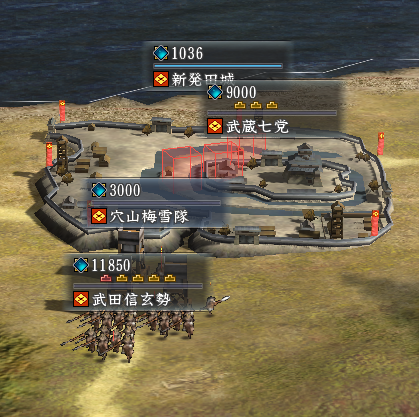 小山田信茂勢で城を攻撃、残りは出撃してくる軍勢を叩きます。
