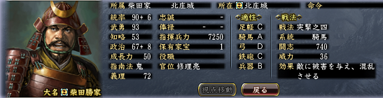 また遊びたくなったので、今回は柴田勝家でプレイ。