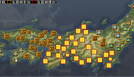 有力大名は、島津家13ヶ国、毛利家12ヶ国、南部家4ヶ国、北条家3ヶ国、上杉家3ヶ国、長宗我部家1ヶ国です。