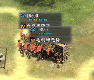 毛利家の一萬田鑑実勢18,200援軍きたる。