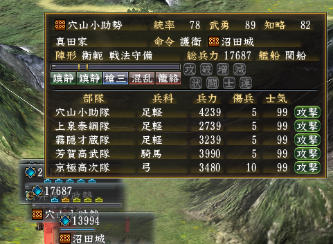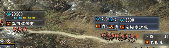北信濃上田城から、真田信勝勢と真田信幸隊が出撃してきます。