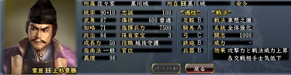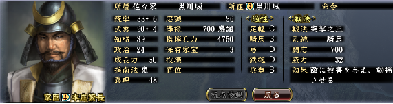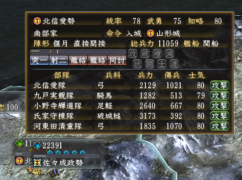 佐々家の総武将数は153人です。毛利家と同盟中。