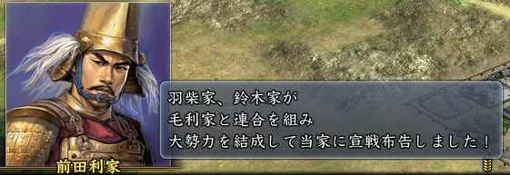 我が佐々家に対抗すべく、毛利家を中心に、羽柴家と鈴木家が手を組み、大連合を結成とのこと!