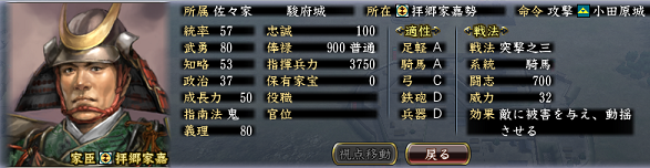 拝郷家嘉は当初からの柴田勝家配下の武将です。