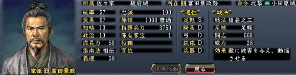 現在、佐々家は15ヶ国所有(北近江、越前、加賀、能登、越中、飛騨、美濃、尾張、三河、南信濃、遠江、駿河、甲斐、相模伊豆、武蔵)。