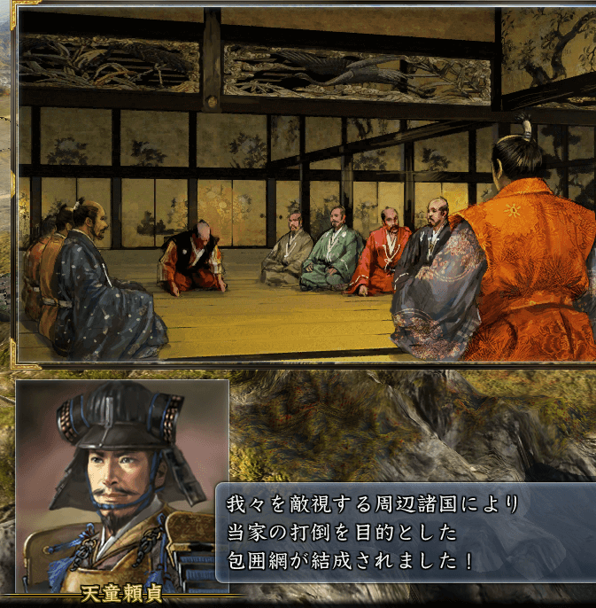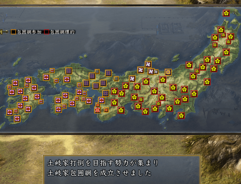 朝敵→各大名の包囲網と政治的攻勢をくらい、今回は防衛に忙しかったです。
