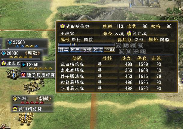 兵力は少ないけれども、鉄砲を貯め込んでいます。