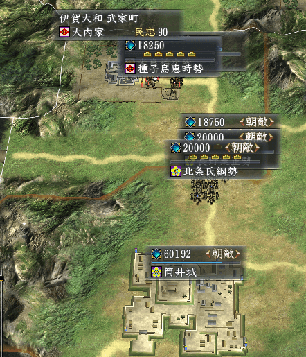 大内との同盟が出来ないので、大内の伊賀大和侵攻軍 70,000を叩きます。