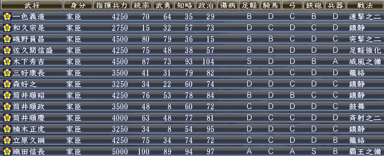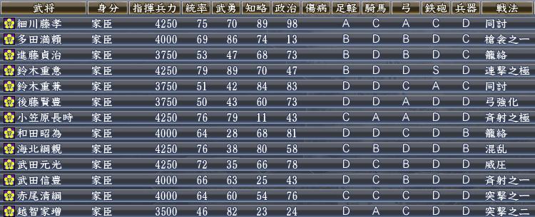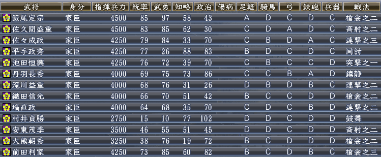 そして、織田の武将たちを登用。