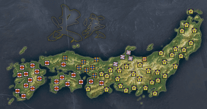 有力大名は、大内家21ヶ国、尼子家7ヶ国、本願寺家4ヶ国、長尾家1ヶ国です。