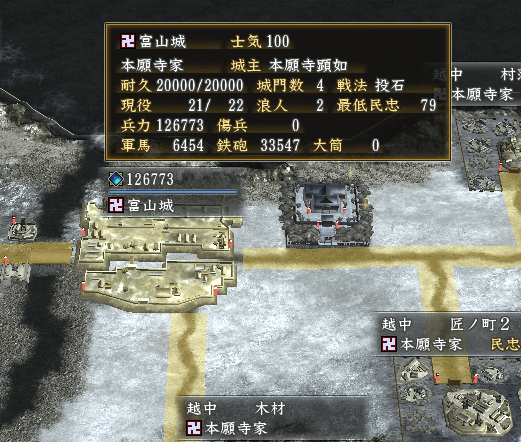 北方の本願寺家は、越中に兵力を集中。