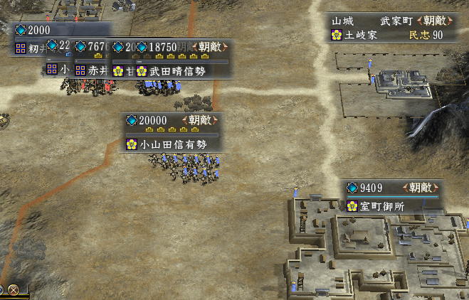 土岐領土である紀伊は、大内勢によって伊賀大和を制圧されて孤立。兵力は100,000ほどしかありません。