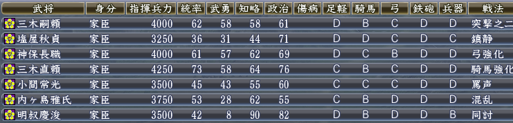 さっそく、三木家の武将たちを登用。
