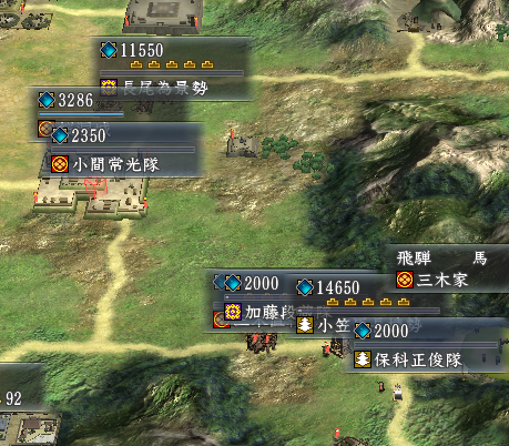 長尾家の少数の援軍が邪魔です。