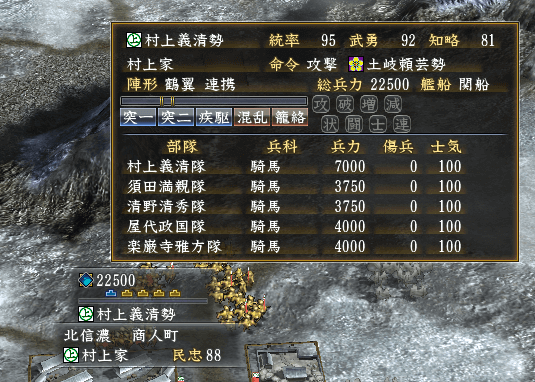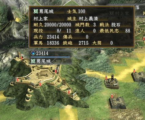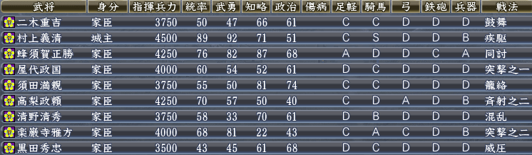 現段階では、武田家には勝てないので、北信濃の村上家を目指します。