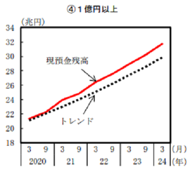個人預金の残高別の現預金残高表