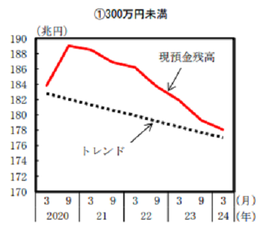 上記の結果から、個人預金の残高が300万円未満の世帯のみ、現預金が減少していることがわかります。