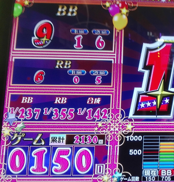 705G BIG 当選後、150Gまで回す。